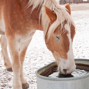 Frozen stock tanks and water troughs in our paddocks and pastures not only pose a dehydration risk to horses, they create a lot of extra work for us. In order to keep fresh water available to our horses at all times, we are constantly breaking and removing ice, hauling hot water from the barn, or installing costly electric systems.
